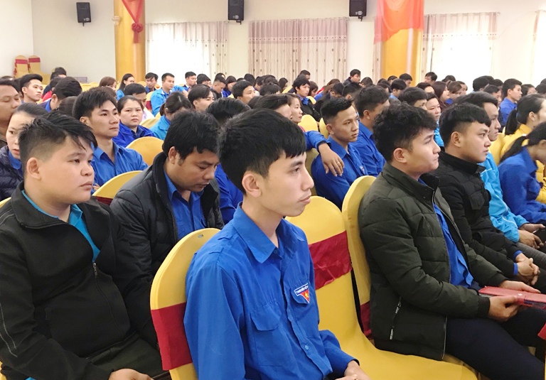 Cán bộ Đoàn, đoàn viên thanh niên chăm chú lắng nghe các giảng viên trình bày về chương trình OCOP
