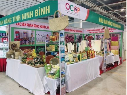 Năm 2018, Ninh Bình đã tham gia quảng bá, giới thiệu sản phẩm của địa phương tại hội chợ OCOP Quảng Ninh và khu vực Trung du miền núi phía Bắc tại Thái Nguyên với các sản phẩm: Gạo sạch; nấm, trạch sụn; cơm cháy; đồ hộp hoa quả; mắm tép; rượu Kim Sơn; thêu ren; cói, bèo bồng, mây tre đan; thảo dược; gốm Bồ Bát.