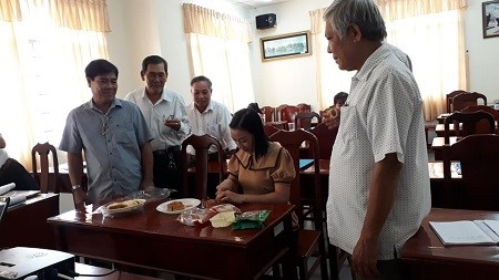 Học viên thưởng thức Bánh Bao chỉ và Bánh Trung thu của cơ sở Bánh Ngọc Thu, sản phẩm được công nhận 3 sao năm 2019.