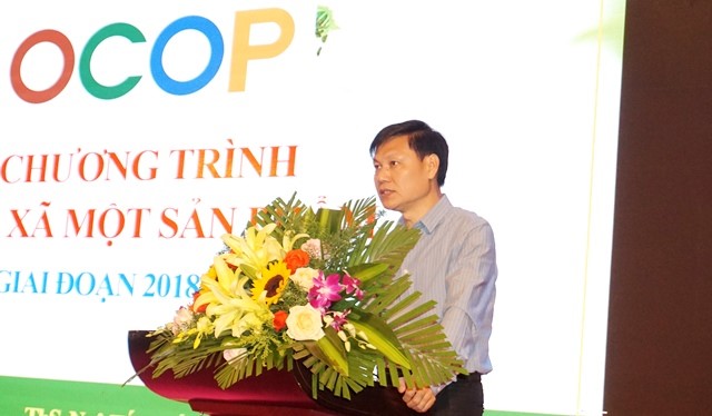 Phó Chánh Văn phòng điều phối nông thôn mới Trung ương, chuyên gia Chương trình OCOP quốc gia Ngô Tất Thắng phát biểu tại hội nghị. |