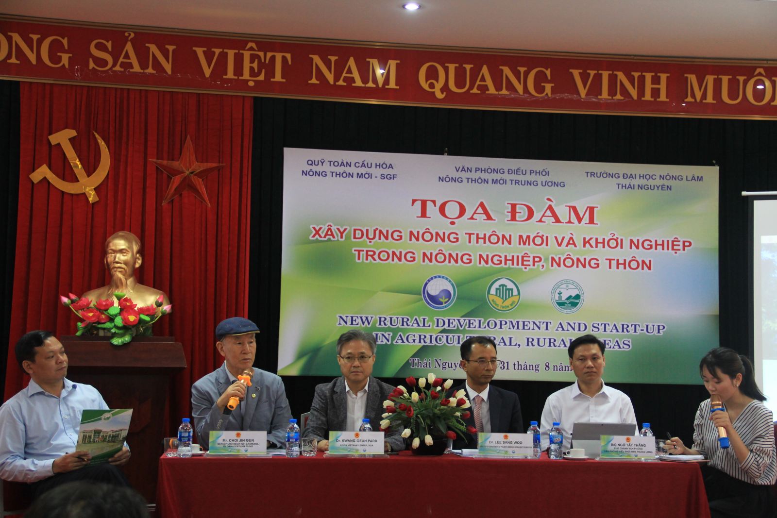 Trong khuôn khổ hội thảo quốc tế, chiều ngày 31/08/2018, Quỹ Toàn cầu hóa Nông thôn mới Hàn Quốc - SGF phối hợp với Văn phòng Điều phối nông thôn mới Trung Ương, Đại học Nông Lâm Thái Nguyên tổ chức “ Tọa đàm Xây dựng Nông thôn mới và khởi nghiệp trong Nông nghiệp, nông thôn” giữa các chuyên gia Hàn Quốc và cán bộ, giảng viên, sinh viên trường.